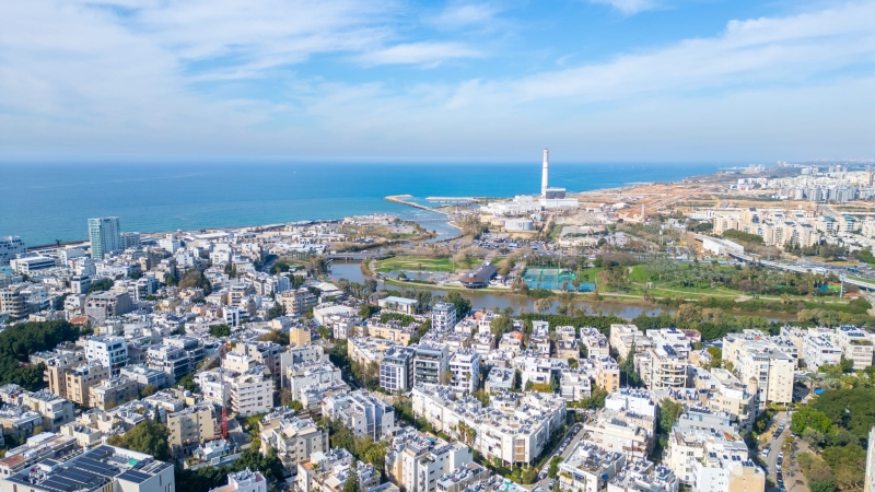 Appartement élégant à un étage élevé avec vue panoramique sur la ville et la mer dans une tour de luxe à Tel Aviv.